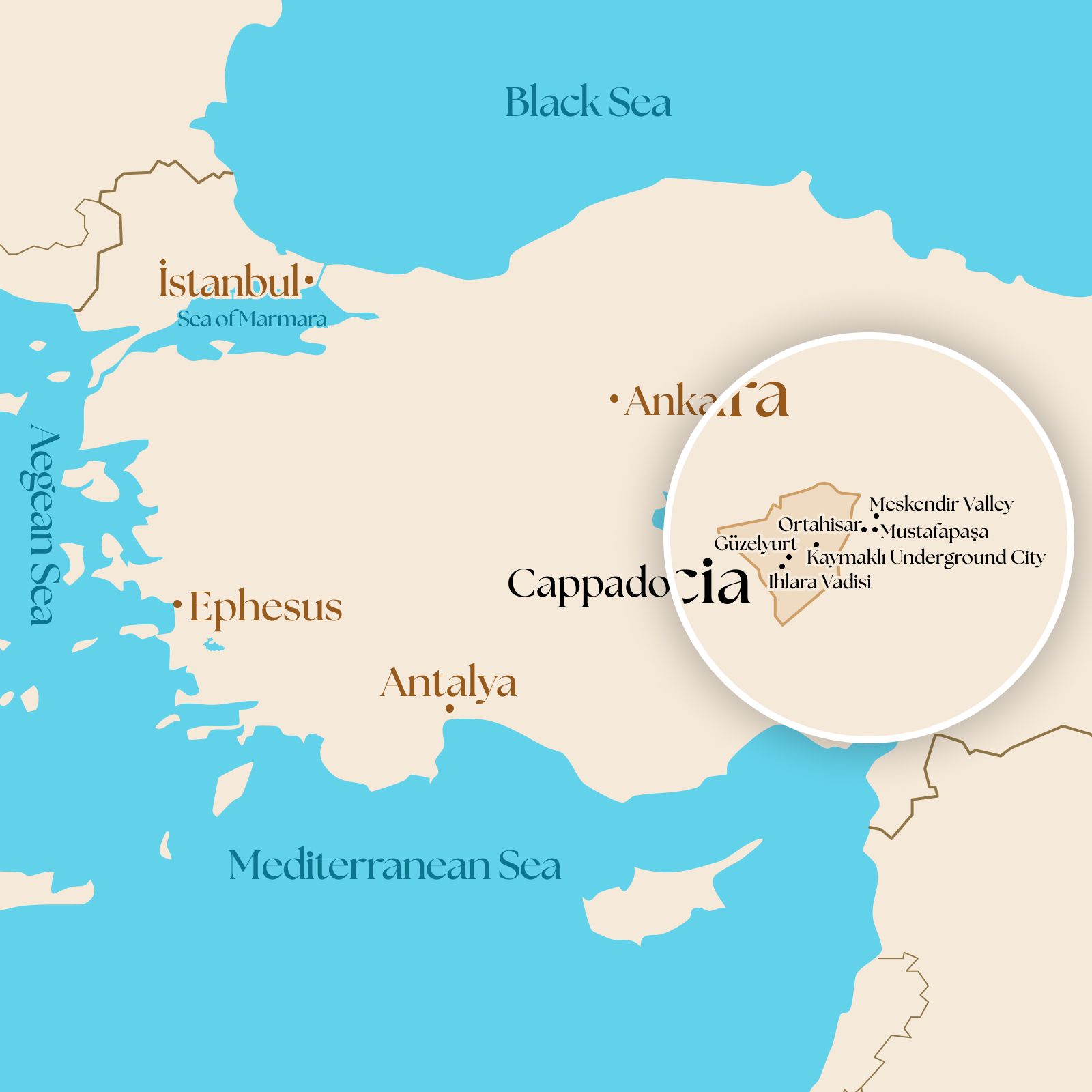 Later in the day we drive to Guzelyurt, our next destination. En route we will visit Kaymakli underground city, carved way back in the past as a shelter in times of siege and continuous raids.