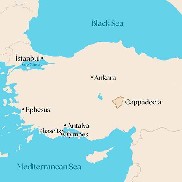 Later in the day, you will enjoy a pleasant hike in the Taurus Mountains and will follow a forest trail on the Lycian Way through the Yanartaş National Park, home to the natural eternal flames known since antiquity. The gentle flicker of the flames against the rocky slope is as captivating today as it was to ancient mariners, and it was the source of the legend of Bellerophon and fire-breathing Chimera penned by Homer in the Illiad.